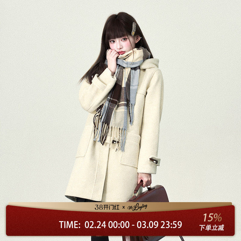 花铃太太jk学院风牛角扣大衣女款秋冬小个子甜妹白色保暖外套长款