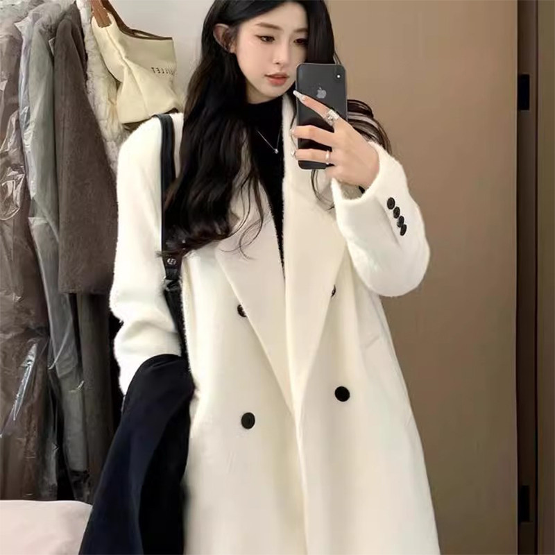 - 韩版宽松毛呢外套女中长款