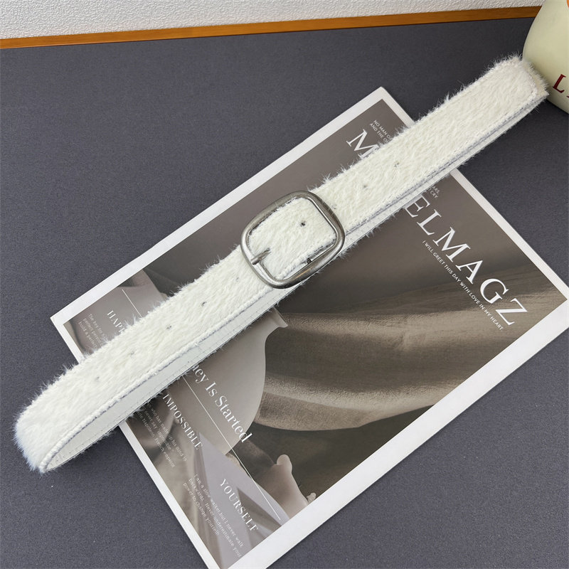 设计感白色绒面皮带女款装饰毛衣大衣牛仔裤时尚y2k毛绒腰带配饰