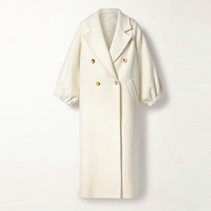 冬季女款大衣乳白色双面大衣手工制作高级定制 袖口松紧款 双排扣