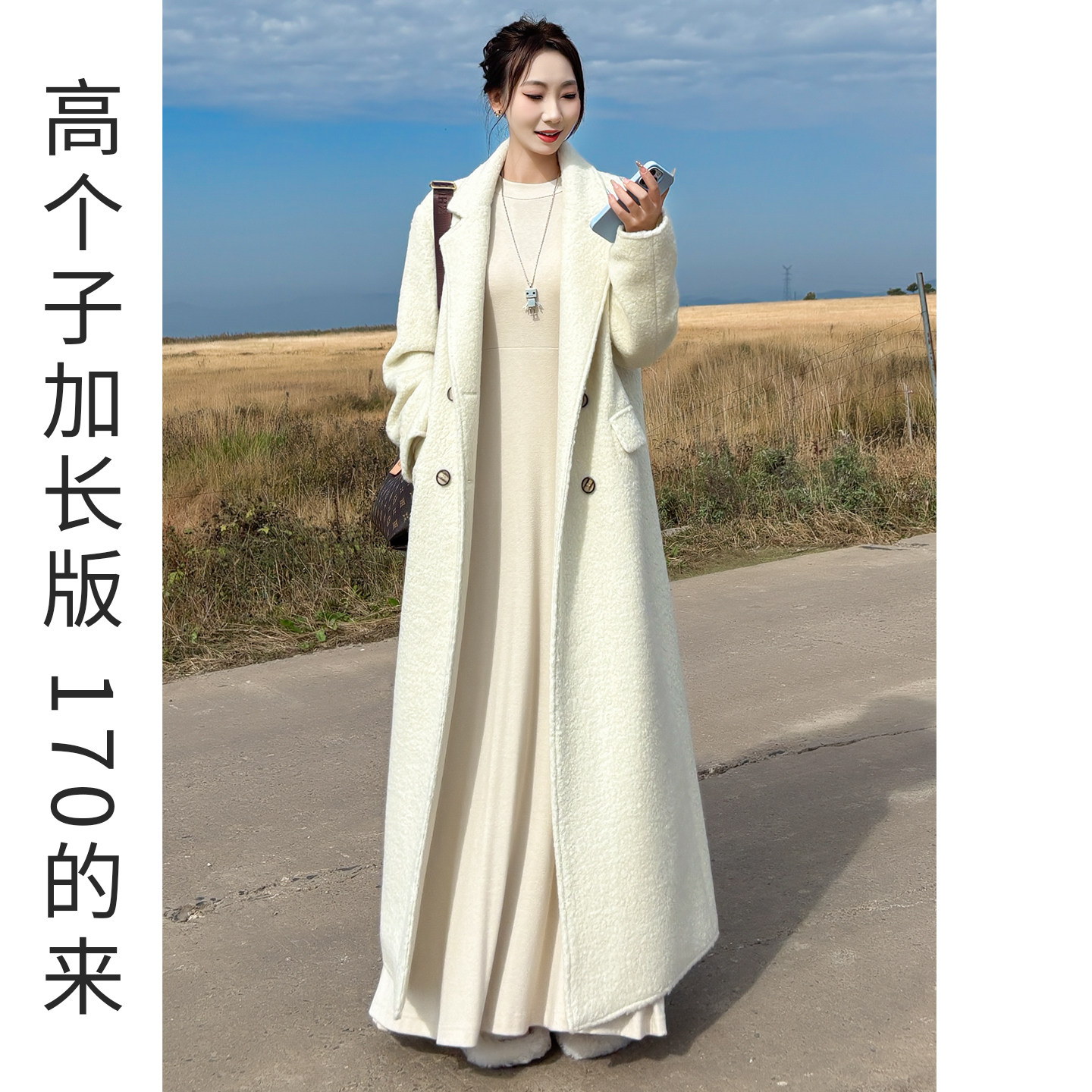 清呢子大衣女款2026新款白色高级感高个子长款双面呢外套冬季羊绒