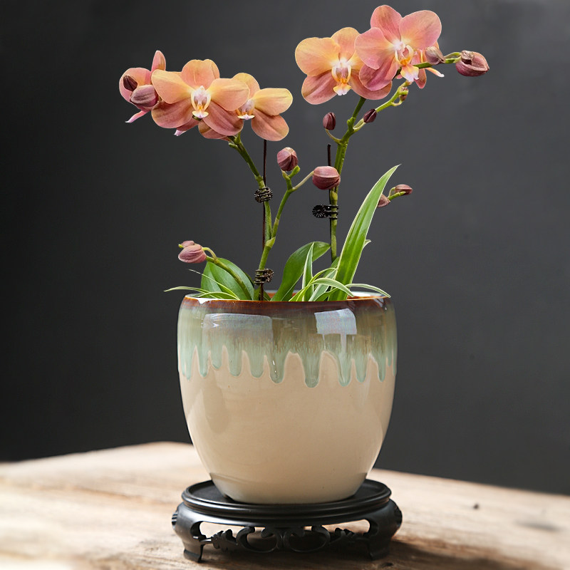 御三泥纯手工彩釉花盆家用兰花蝴蝶兰陶土复古透气陶瓷多肉盆装饰