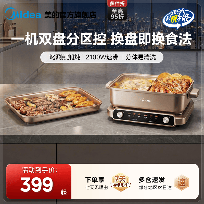 美的电火锅家用多功能一体锅料理电煮锅电热锅烤鱼专用锅官方旗舰