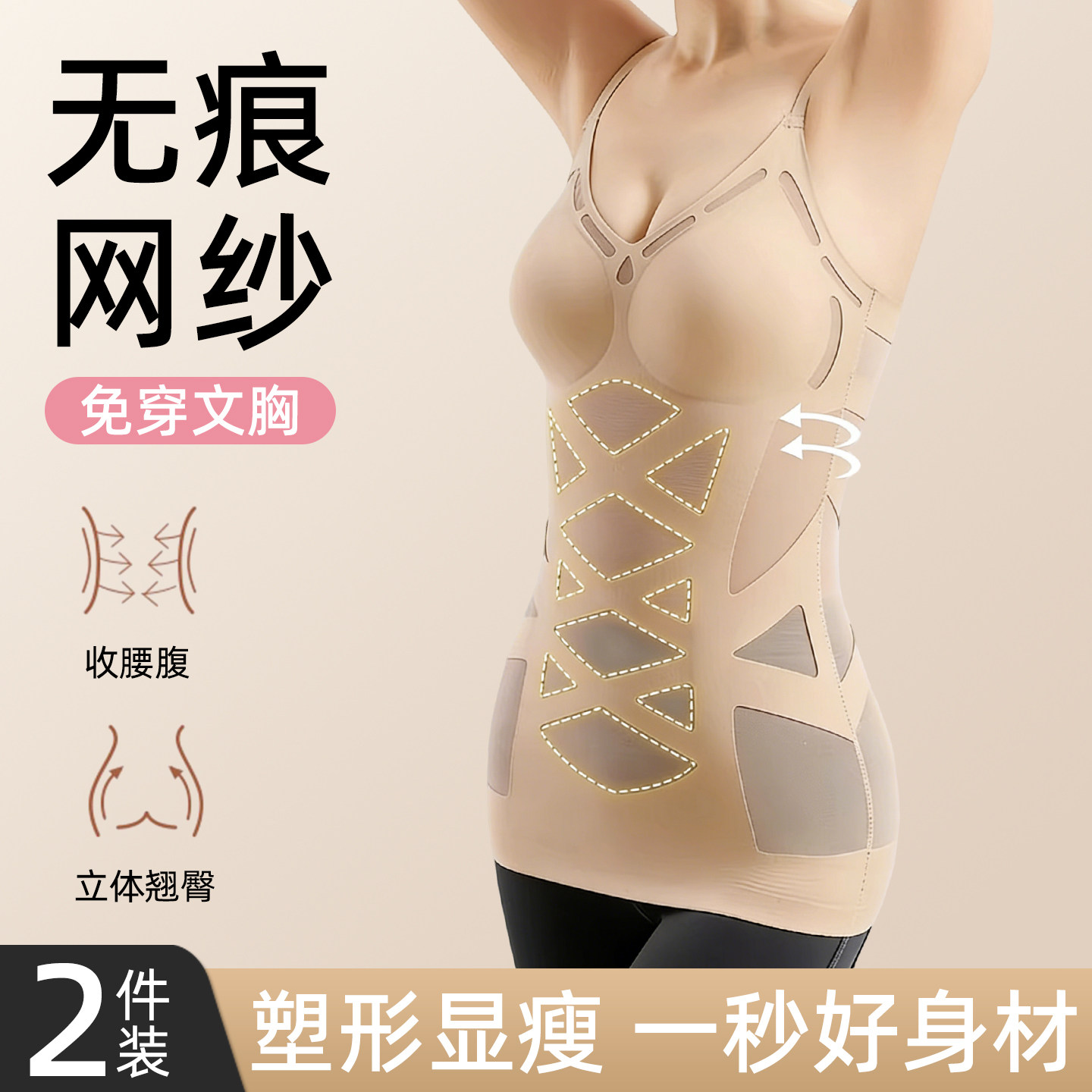 2件装 无痕连体塑身衣收腹束腰超薄瘦身产後四季燃脂束身美体内衣