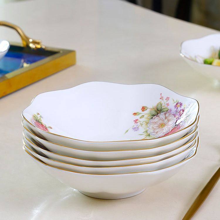 欧式骨瓷餐具套装深盘子菜盘家用创意陶瓷汤盘花边餐盘高级感碟子