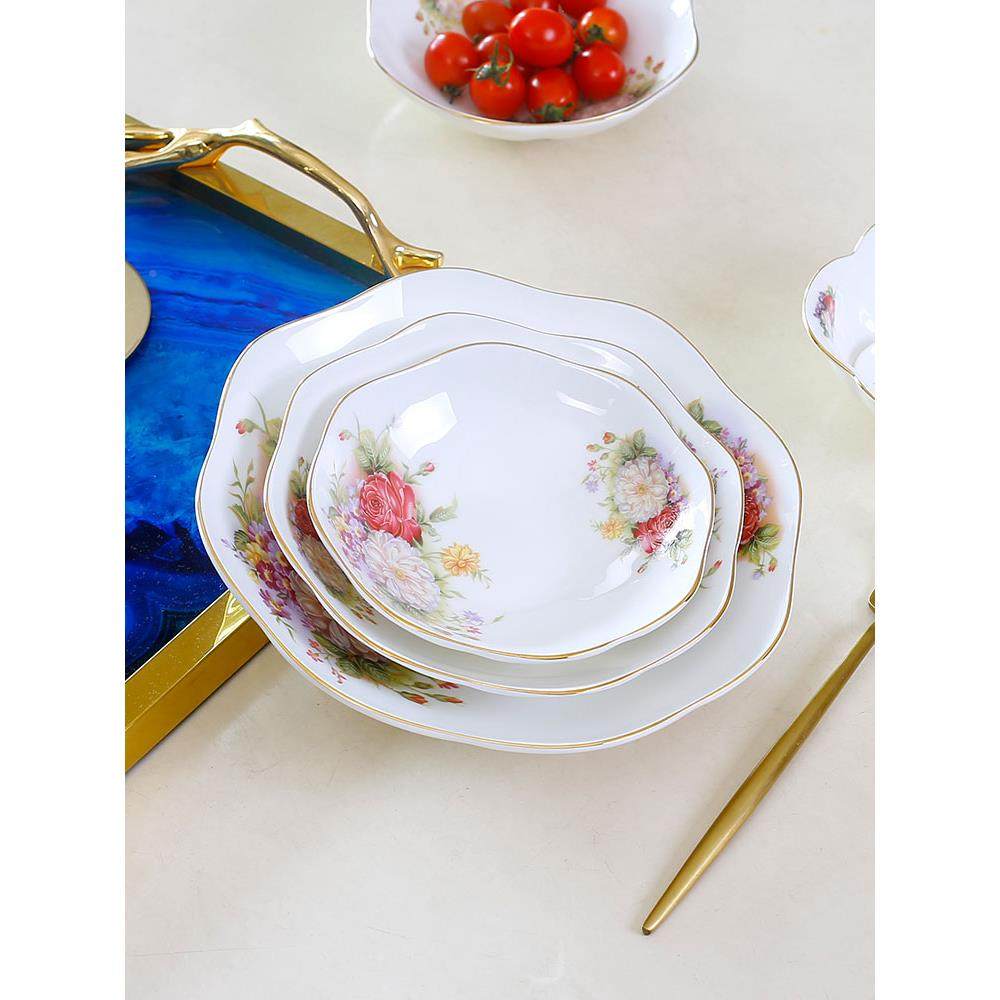 欧式骨瓷餐具套装家用圆盘平碟碗筷全套酒店摆台高档奢华陶瓷送礼