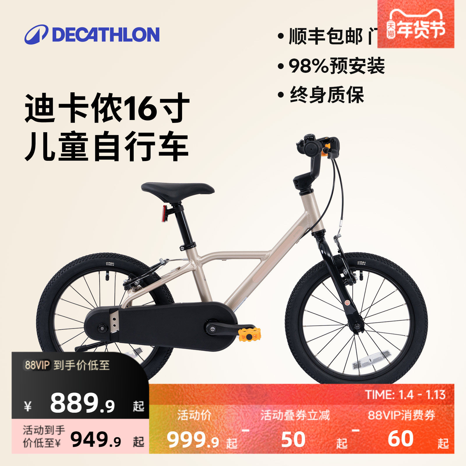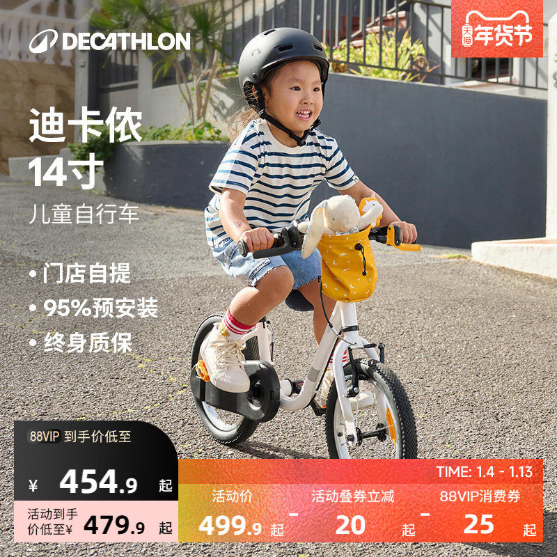 迪卡侬官方旗舰店儿童自行车单车14寸男女孩小童学习平衡车OVBK