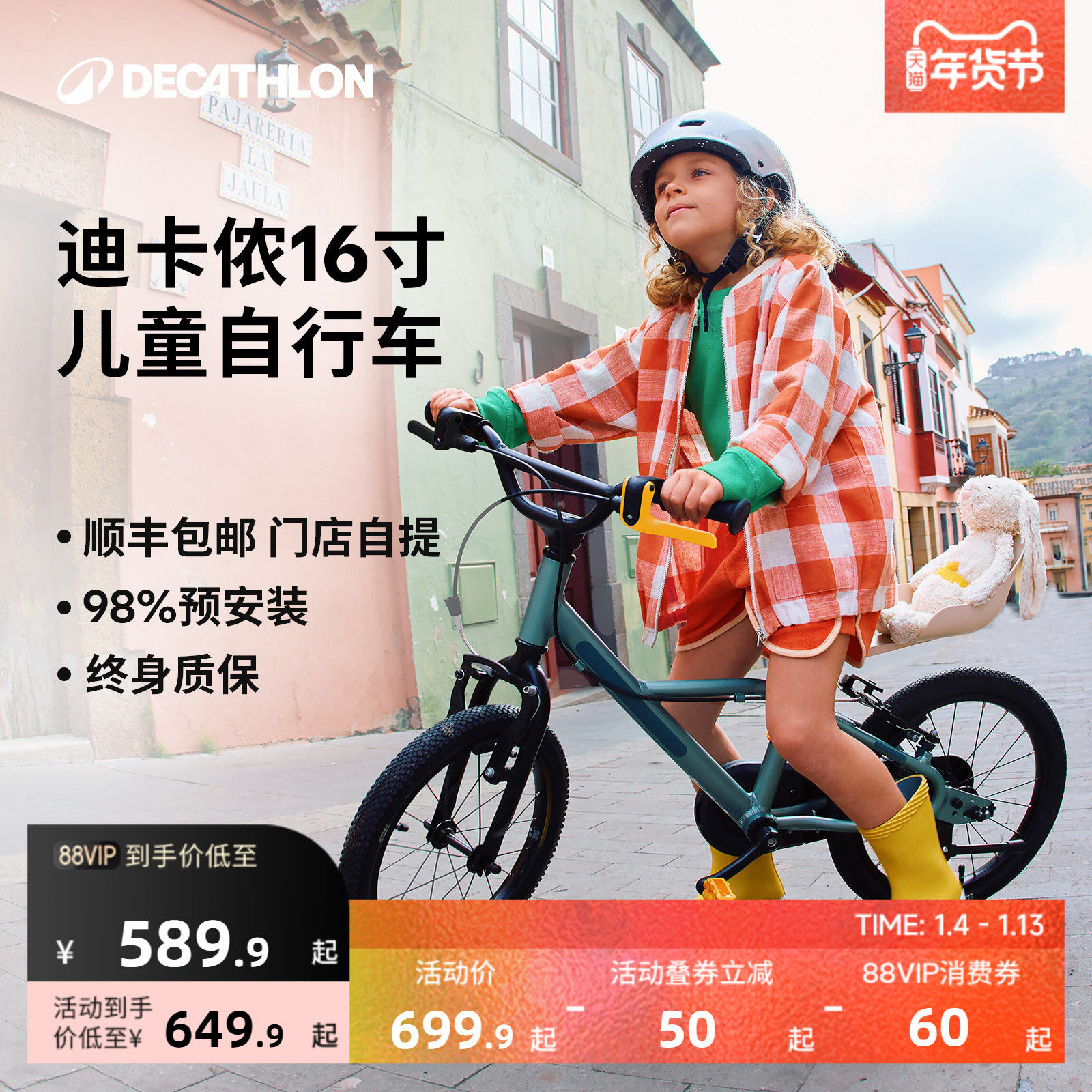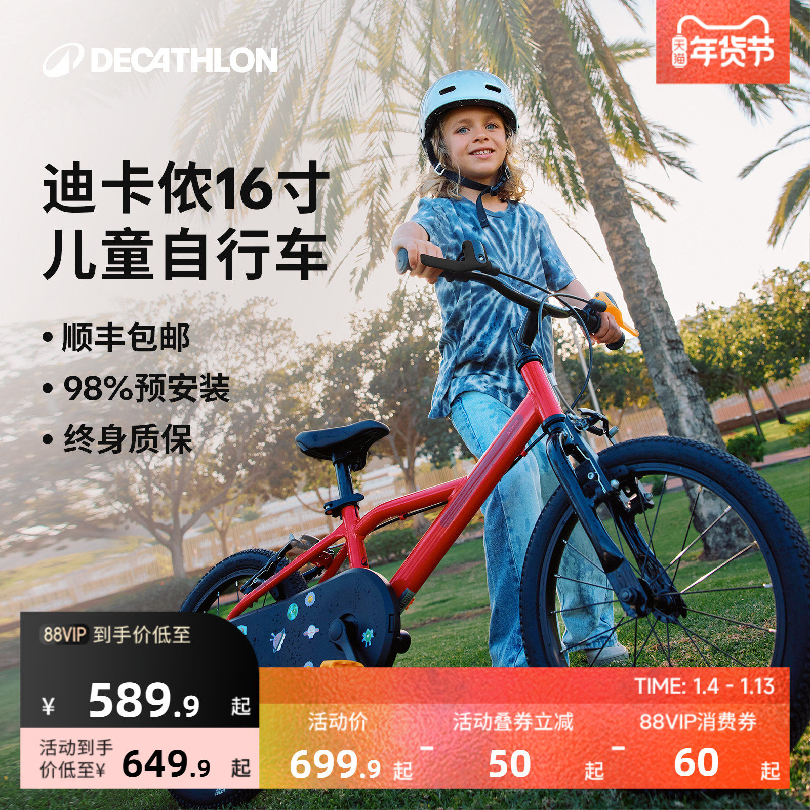 迪卡侬官方旗舰店儿童自行车16寸男女孩超轻铝合金平衡单车OVBK