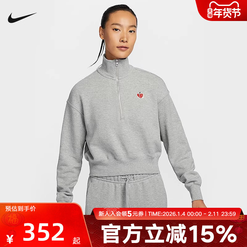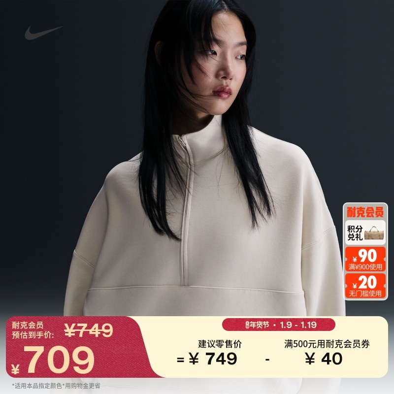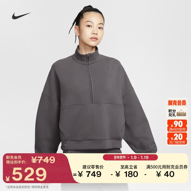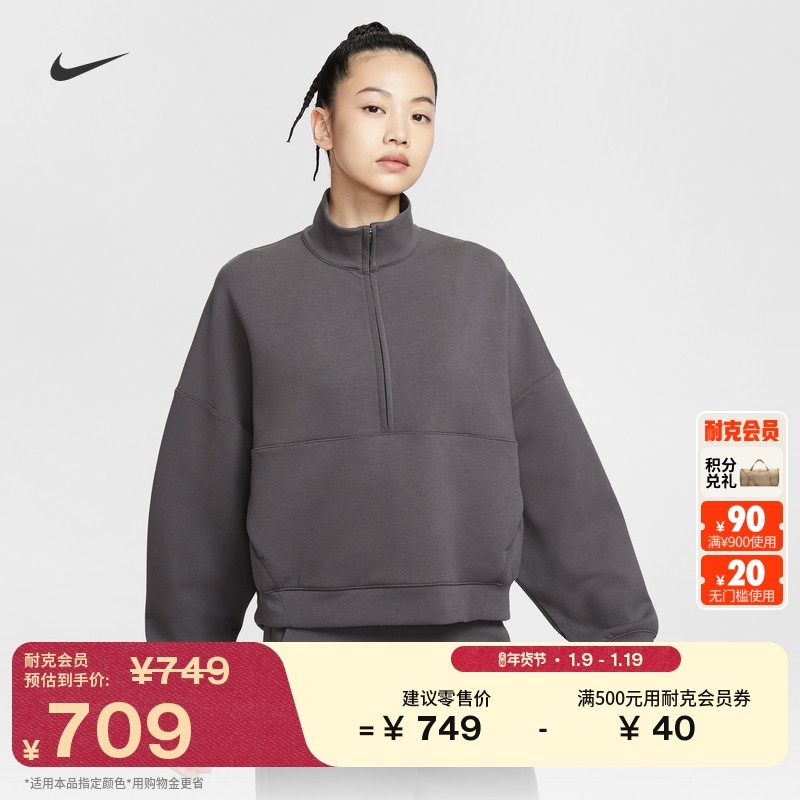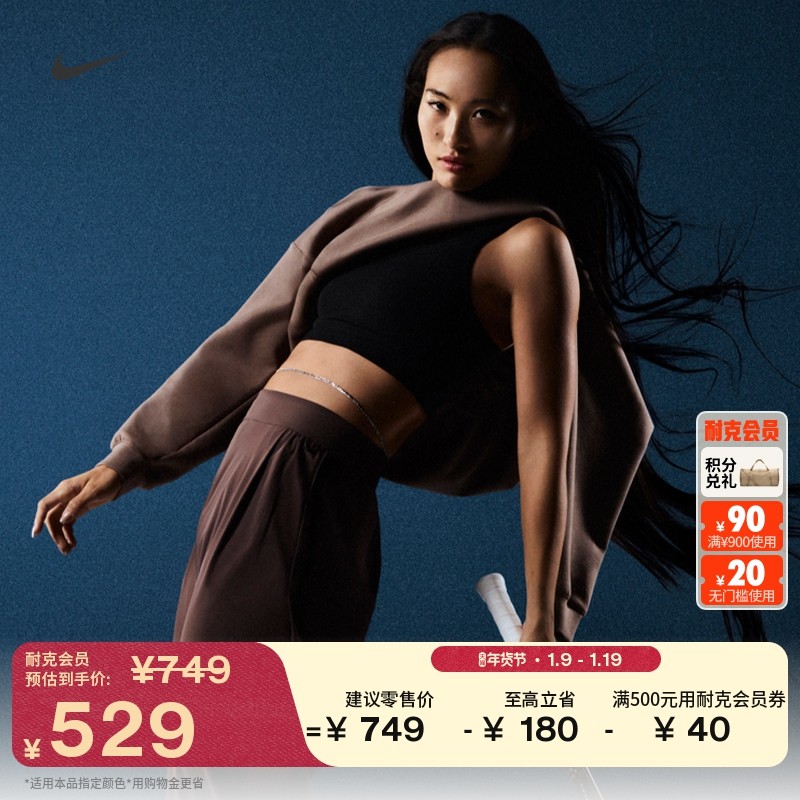 耐克女子超宽松圆领卫衣秋季加绒针织运动衫NIKE PHOENIX FZ4271