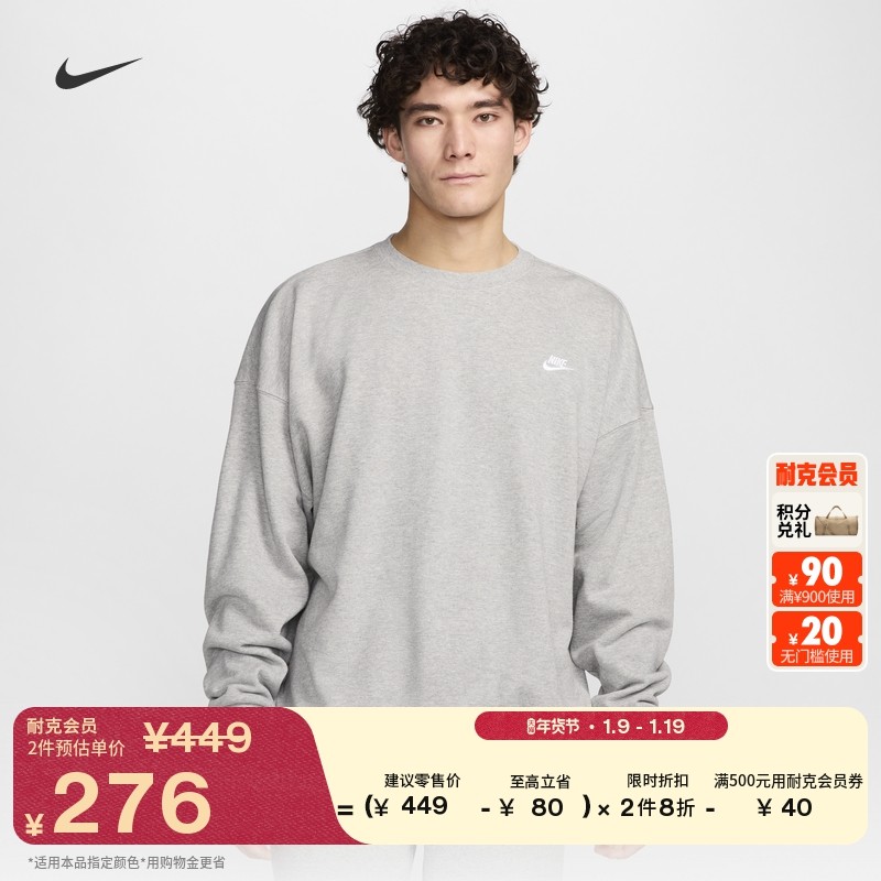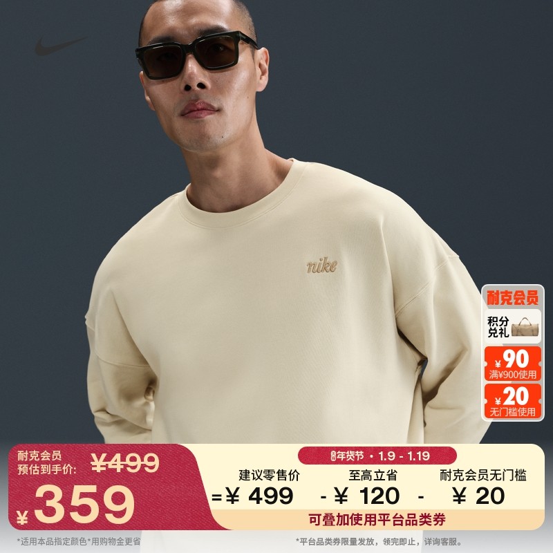 耐克男子超宽松圆领卫衣冬季纯棉法式毛圈运动上衣NIKE IB8360