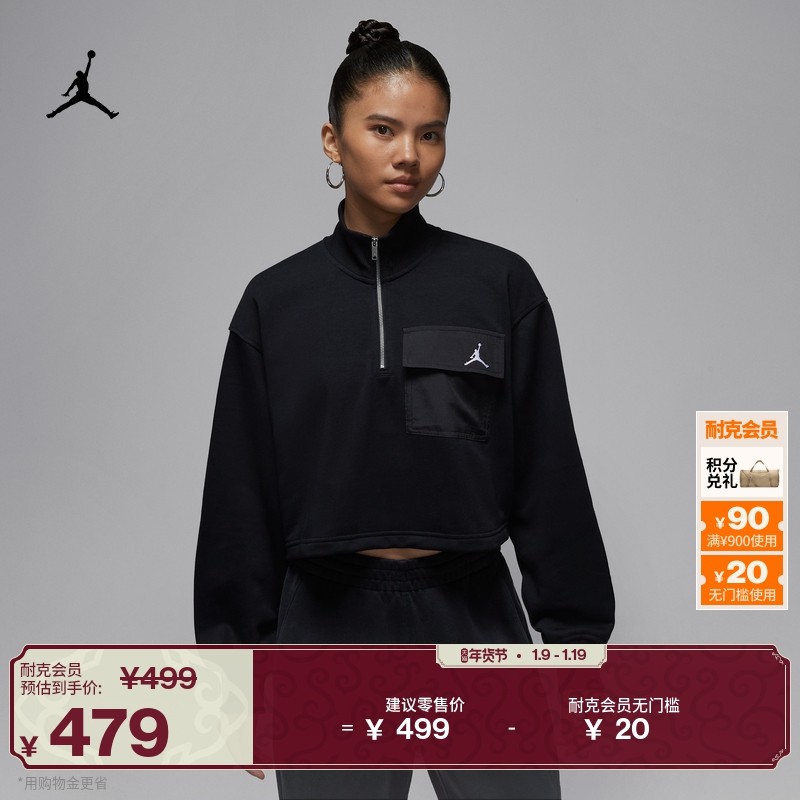 耐克乔丹女子超宽松卫衣春季新款针织徒步亲肤上衣JORDAN IF1070