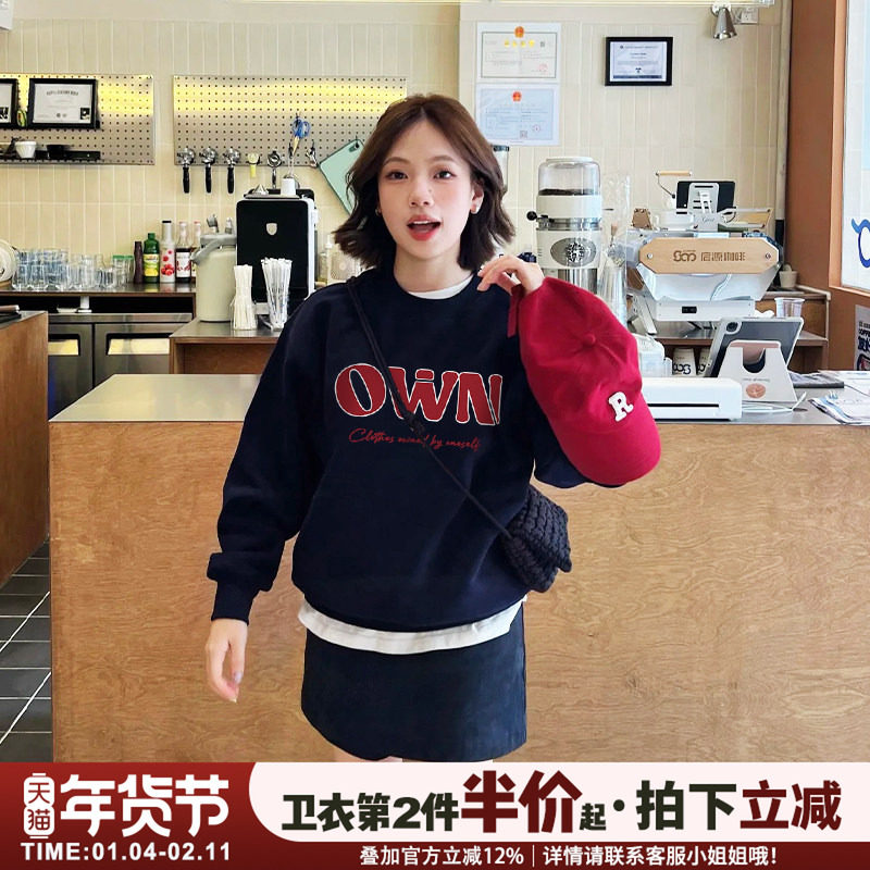 小草宽松定制超好看独特漂亮上衣胖mm大码女装秋冬款美式正肩卫衣