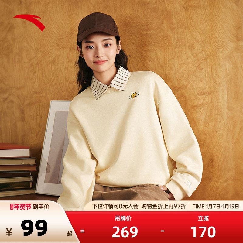安踏×超级植物联名丨套头卫衣男女同款冬季宽松圆领休闲长袖上衣