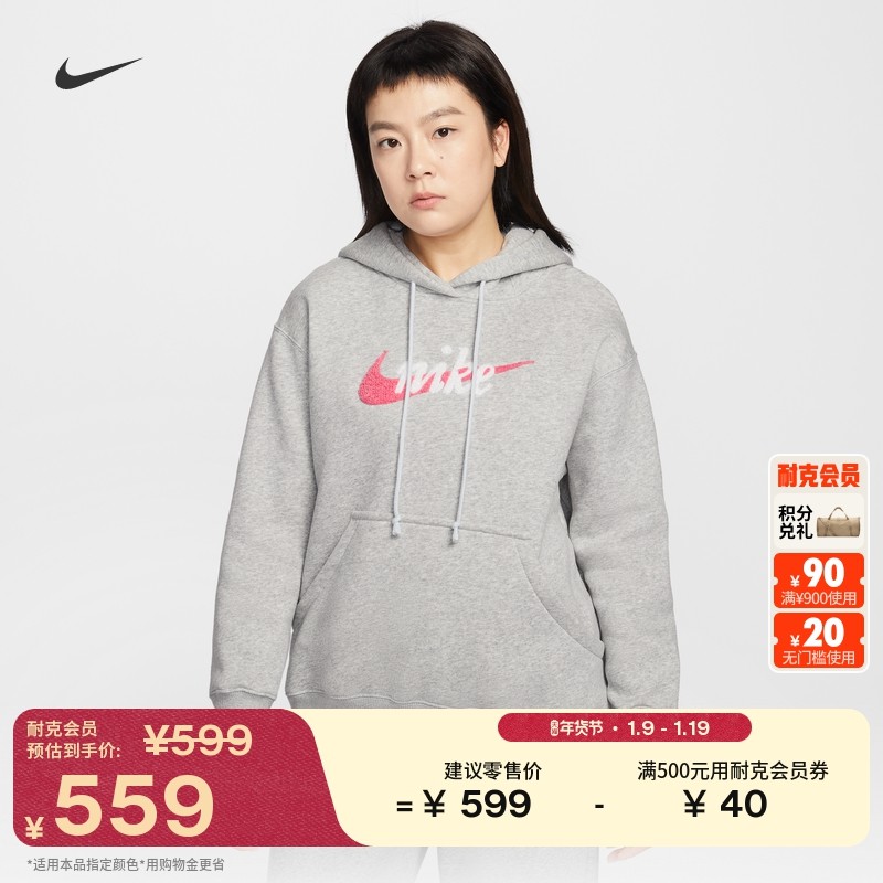 耐克女子超宽松套头连帽衫冬季加绒针织卫衣NIKE PHOENIX DQ5861