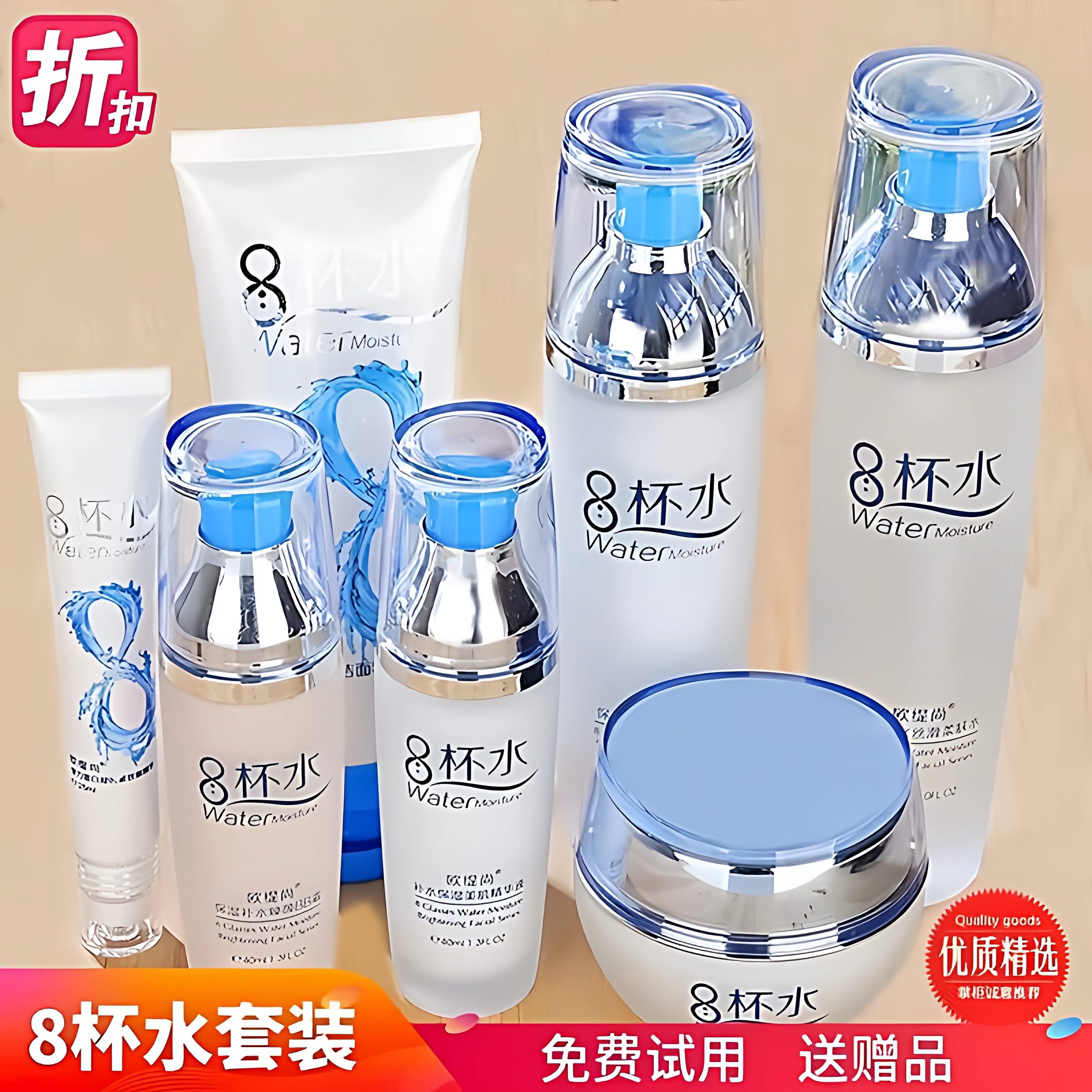 八杯水套装正品 8杯水护肤品补水乳液保湿女控油化妆毛孔滋润精华