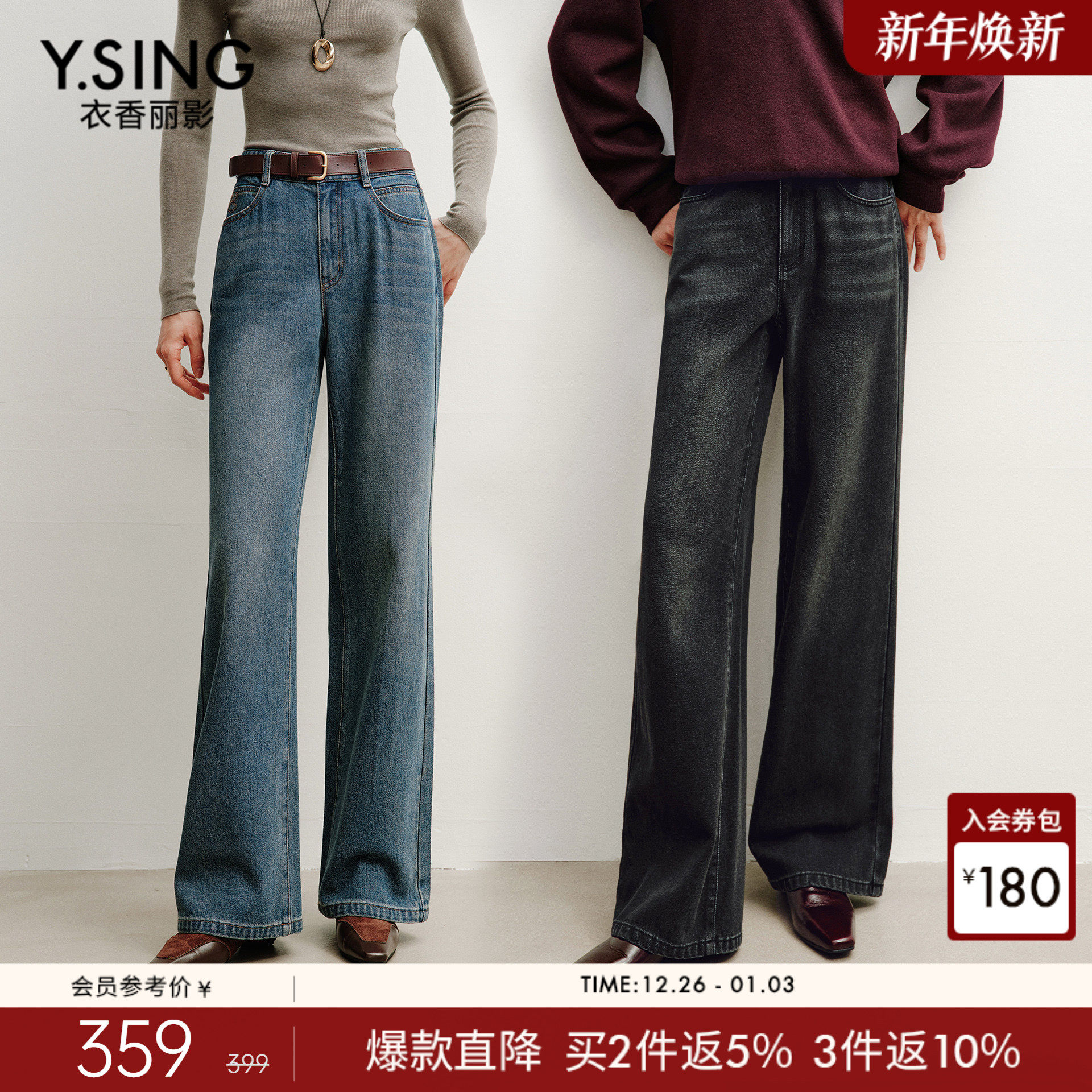 衣香丽影慵懒随性磨毛牛仔裤女2025今年冬装新款流行宽松直筒裤子