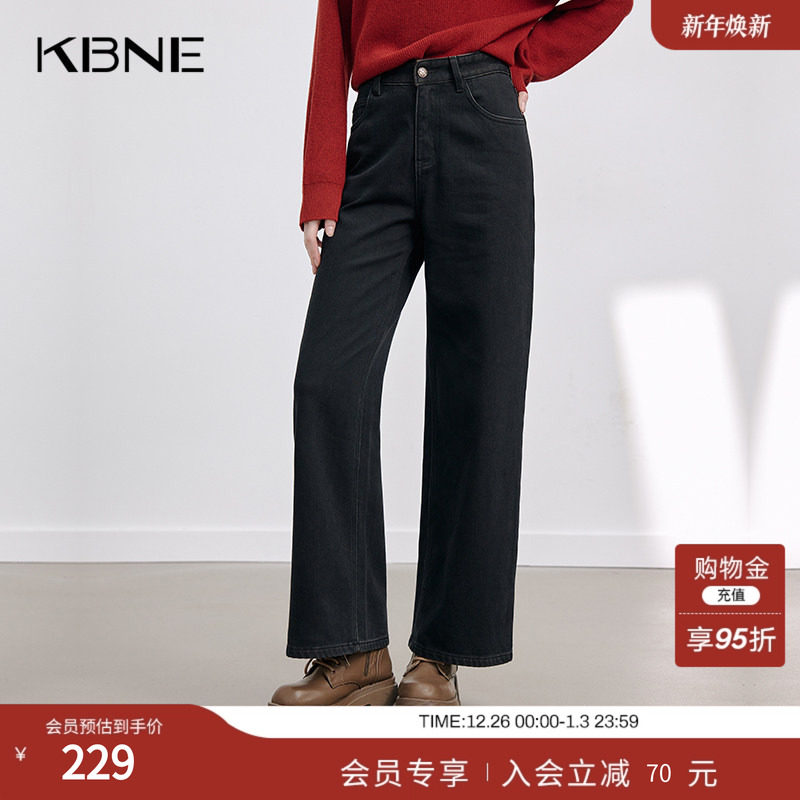 KBNE黑色磨毛牛仔裤女直筒阔腿裤2025秋冬新款做旧宽松长裤女装
