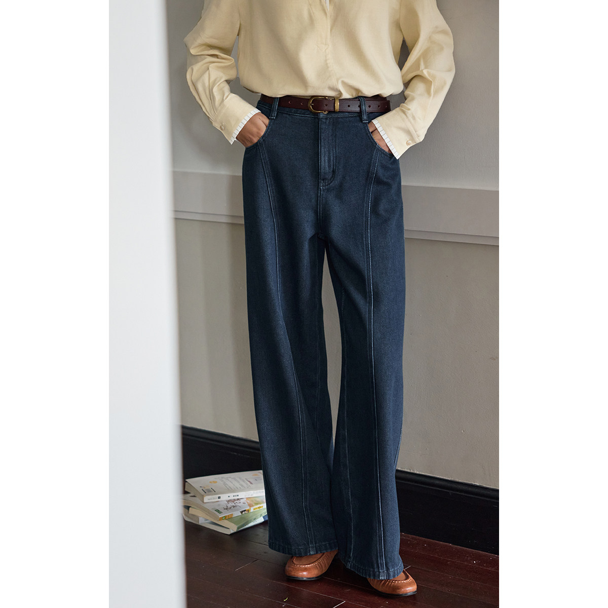 Navigare意大利小帆船莱赛尔棉磨毛牛仔裤女士秋季新款直筒裤子