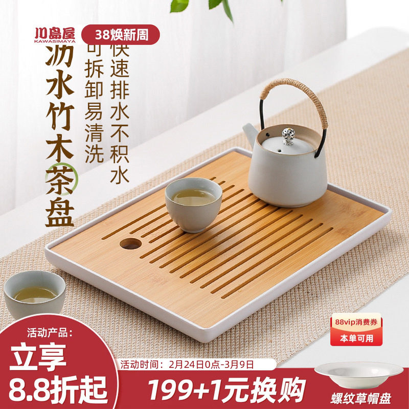 川岛屋日式茶盘2026新款家用小型一人茶海茶台茶杯茶具托盘沥水盘