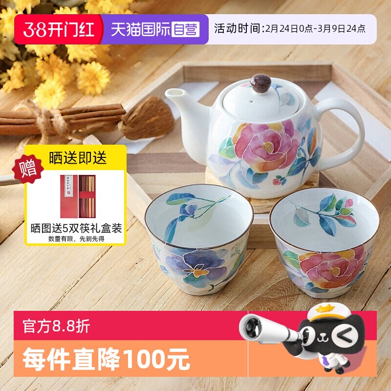日本进口濑户烧手绘樱花兔子茶壶茶杯日式茶具急须壶配滤网侧把壶