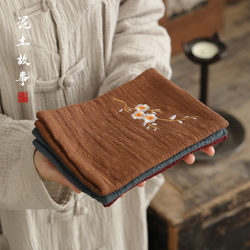 泥土故事 吸水茶巾棉麻刺绣工艺加厚茶台毛巾茶桌布日式茶具配件