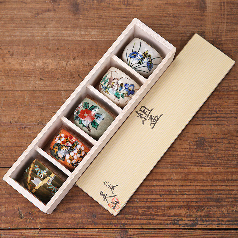 日本进口九谷烧五草花茶杯 品茗杯 茶盏日式茶具套装乔迁生日礼物