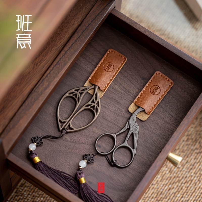班意 复古中式鹤形茶剪刀茶道茶艺小剪刀茶叶包剪刀日式茶具配件