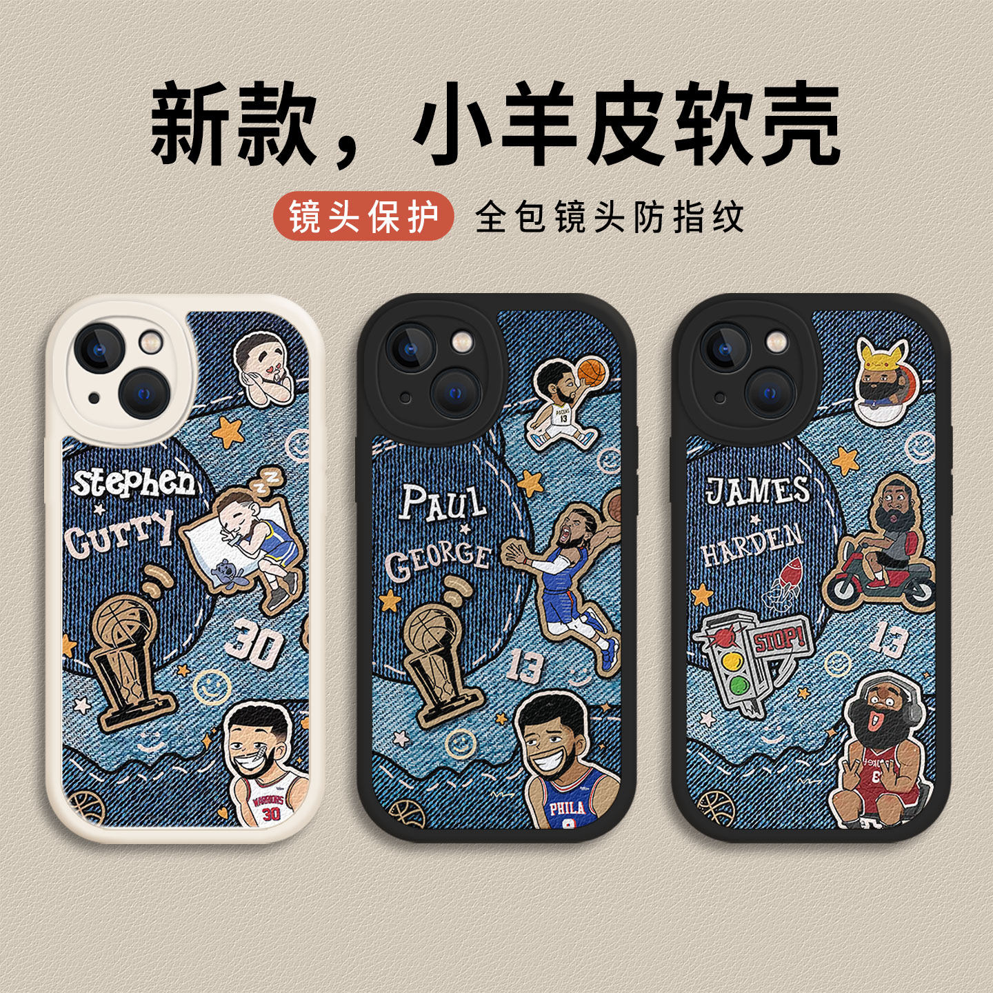 适用苹果17手机壳iPhone16promax牛仔15篮球13库里14保罗乔治plus哈登12mini詹姆斯11球星x新款xr小羊皮xs男8