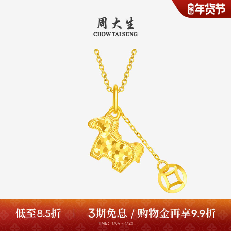 周大生黄金吊坠女5G足金马上有钱项链挂坠生肖马年生日礼物送女友