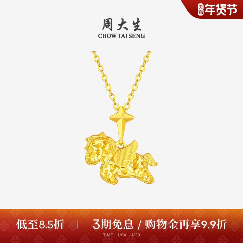 周大生黄金吊坠女足金小飞马独角兽项链挂坠马年生肖礼物官方正品