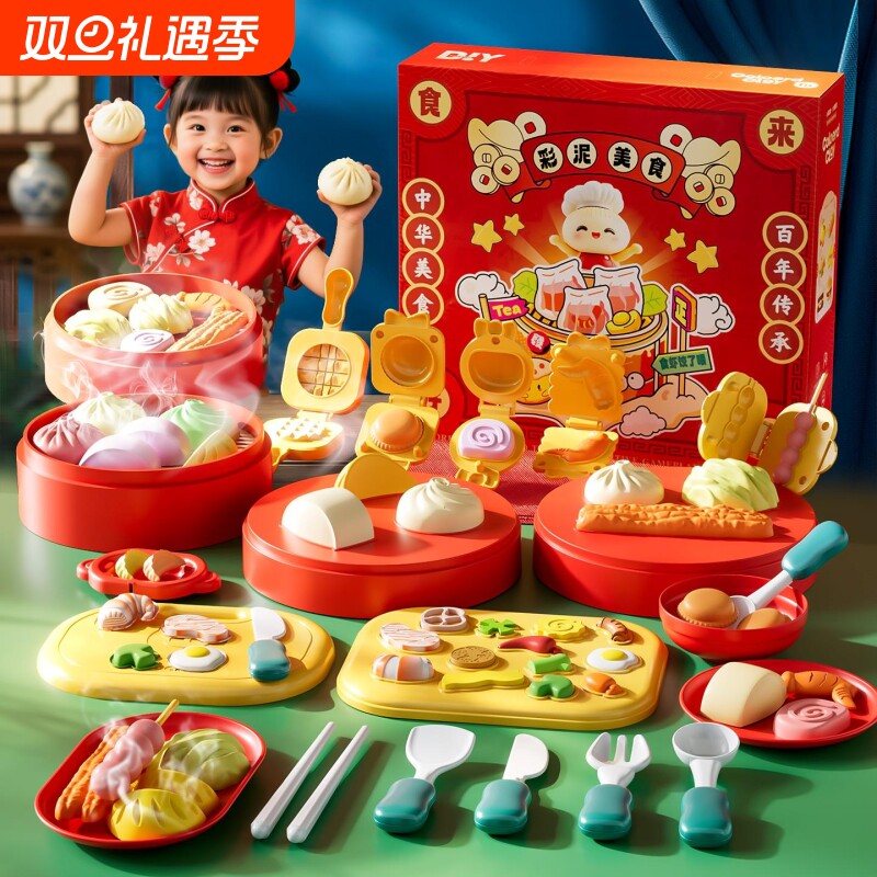 儿童面粉彩泥玩具国潮美食橡皮泥幼儿园无毒模具套装宝宝手工粘土