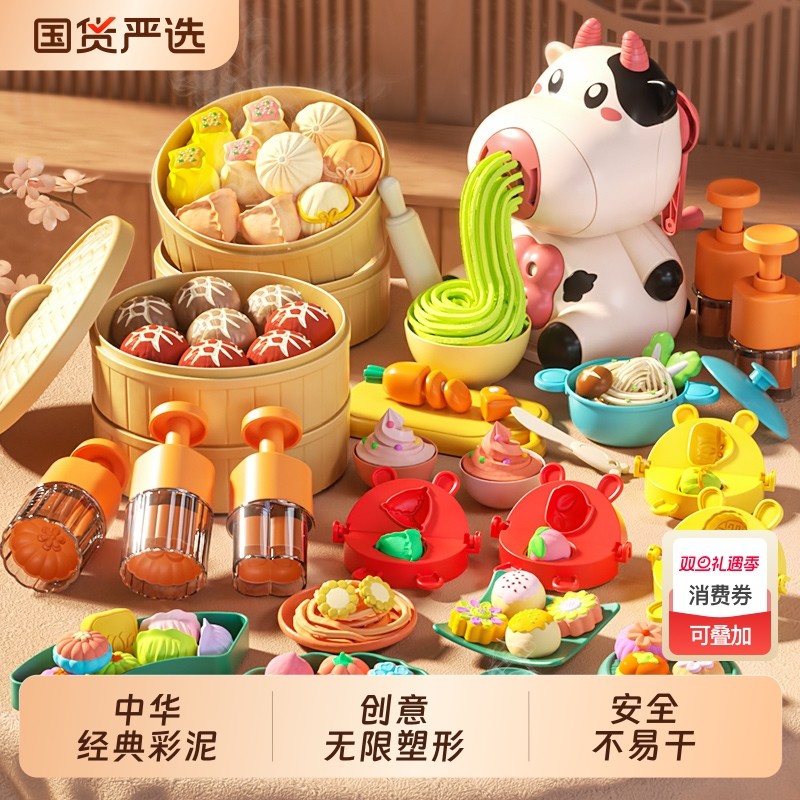 儿童面粉彩泥玩具国潮美食面条机橡皮泥无毒工模具套装宝宝黏粘土