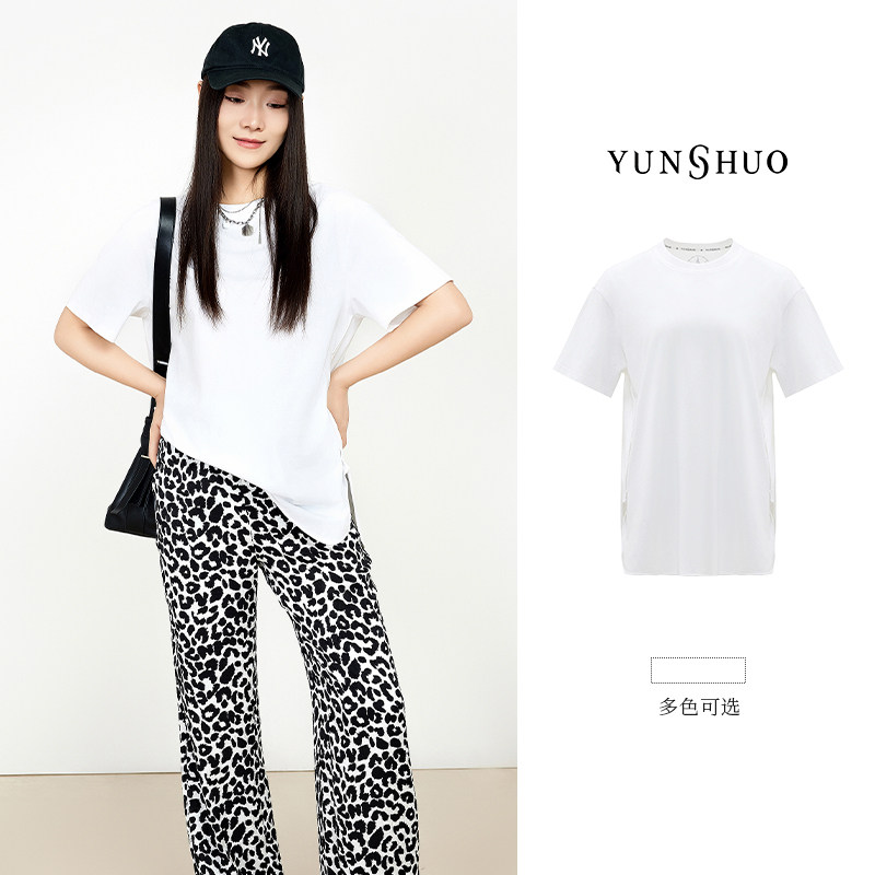 YUNSHUO允硕夏季薄款时尚百搭休闲显瘦宽松中长款棉T恤短袖325314