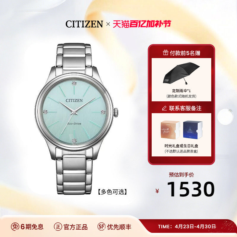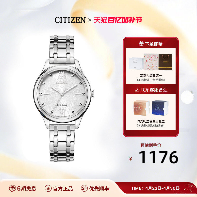 【2026年新品】西铁城官旗光动能钢带彩盘简约时尚休闲女表EM1220