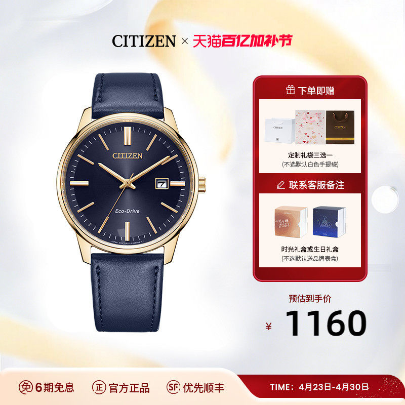 西铁城官方旗舰店光动能商务休闲简约优雅皮带钢带男士手表BM7461