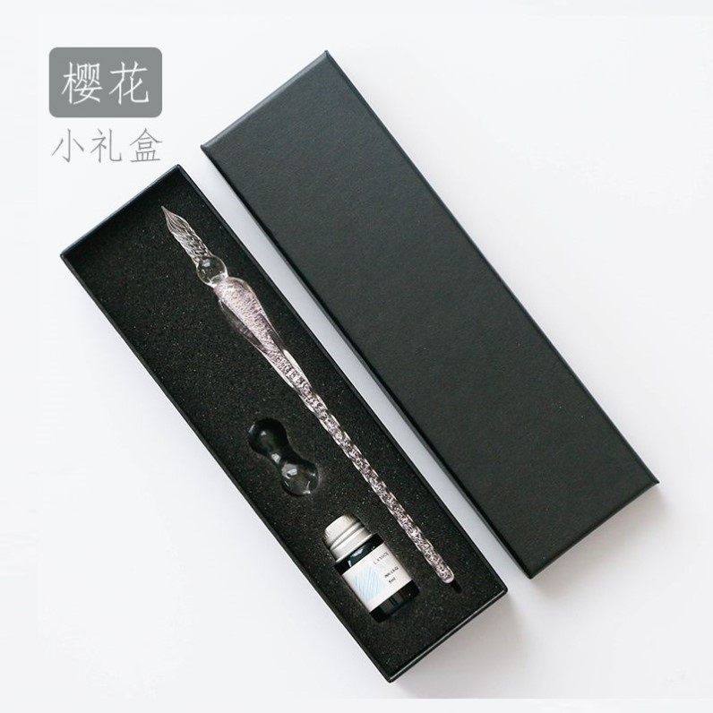 樱花玻璃笔蘸水笔古风高颜值水晶玻璃笔套装蘸水笔笔杆手工沾水琉璃笔钢笔礼盒学生创意网红礼物水晶笔签字笔