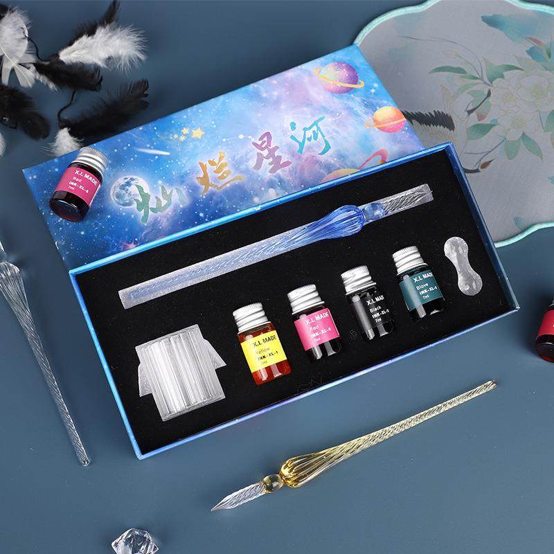 星空水晶玻璃笔蘸水笔套装彩墨水星空沾水琉璃钢笔高颜值礼物礼盒