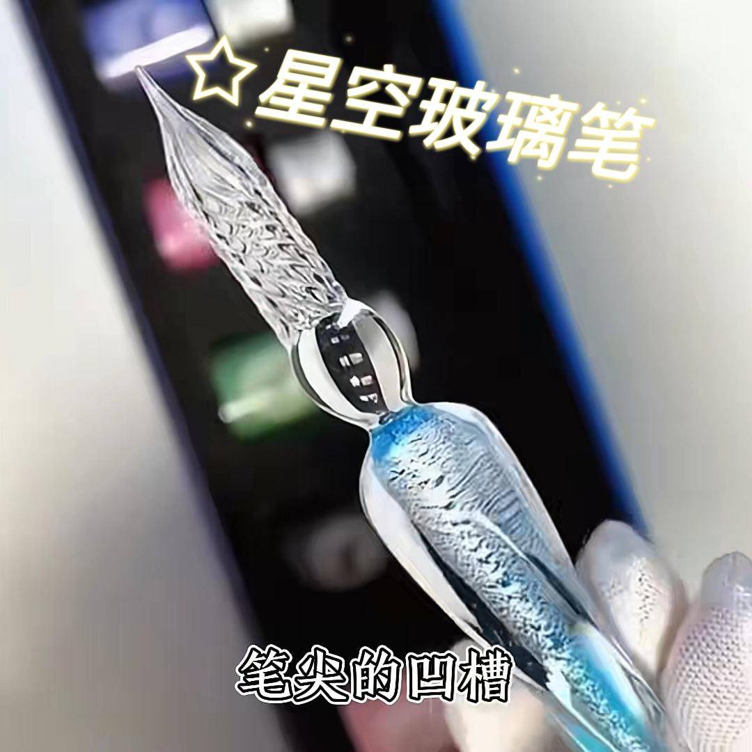 水晶玻璃笔星空蘸水笔渐变色古风网红套装梦幻墨水沾水笔玻璃创意