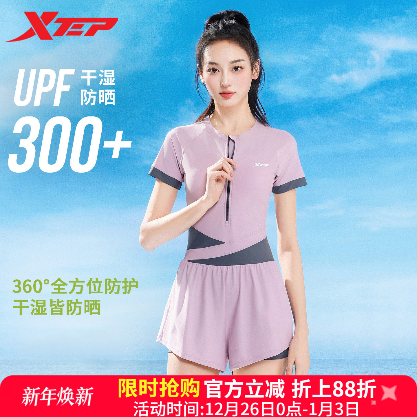 特步泳衣女专业连体平角2025年新款时尚遮肚显瘦保守运动泡温泉装