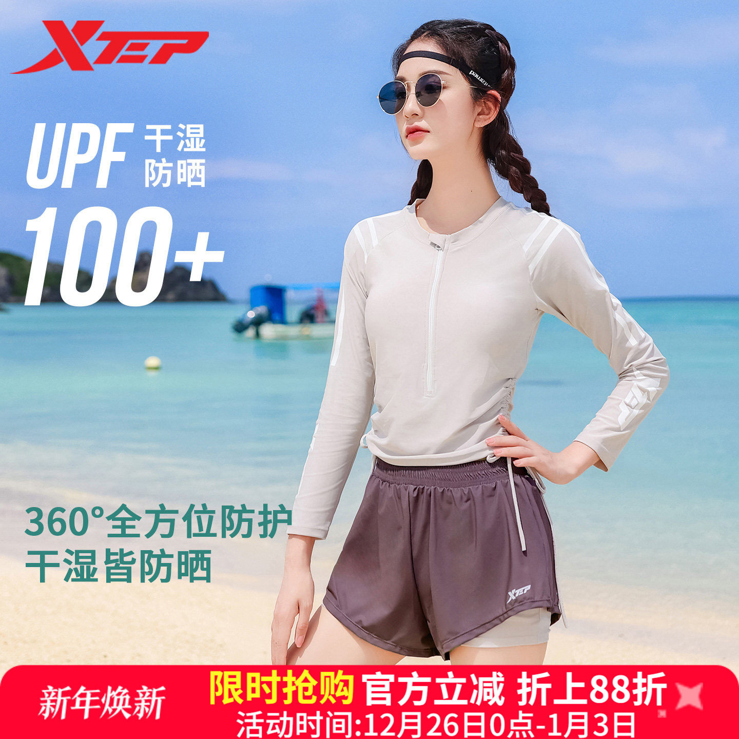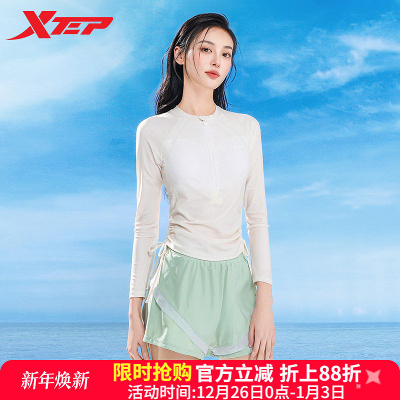 特步长袖泳衣女2025年新款保守遮肚显瘦分体平角运动游泳馆专用装