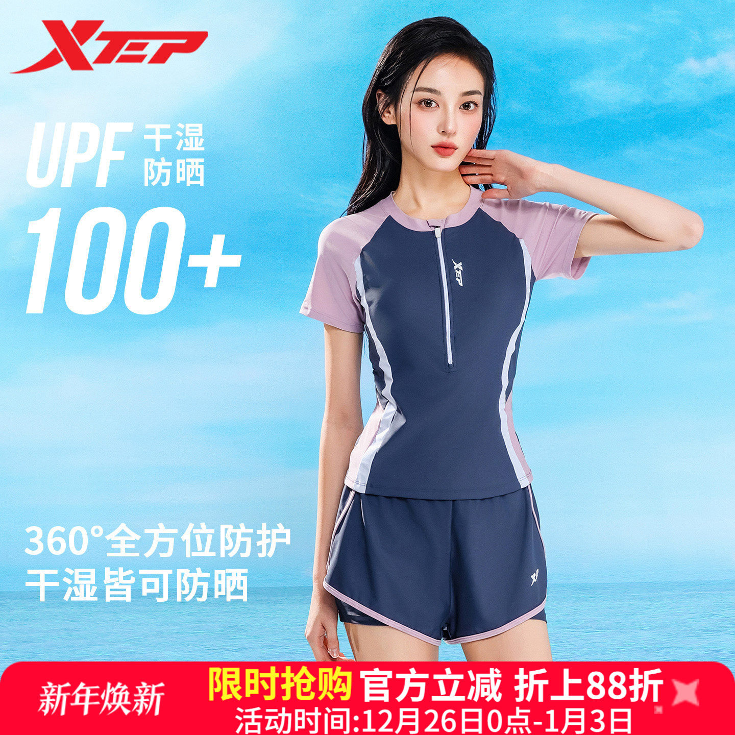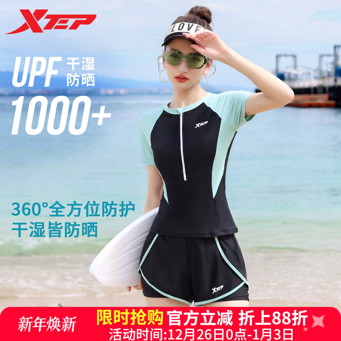 特步泳衣女2025新款分体保守女孩遮肚显瘦平角运动海边度假游泳装