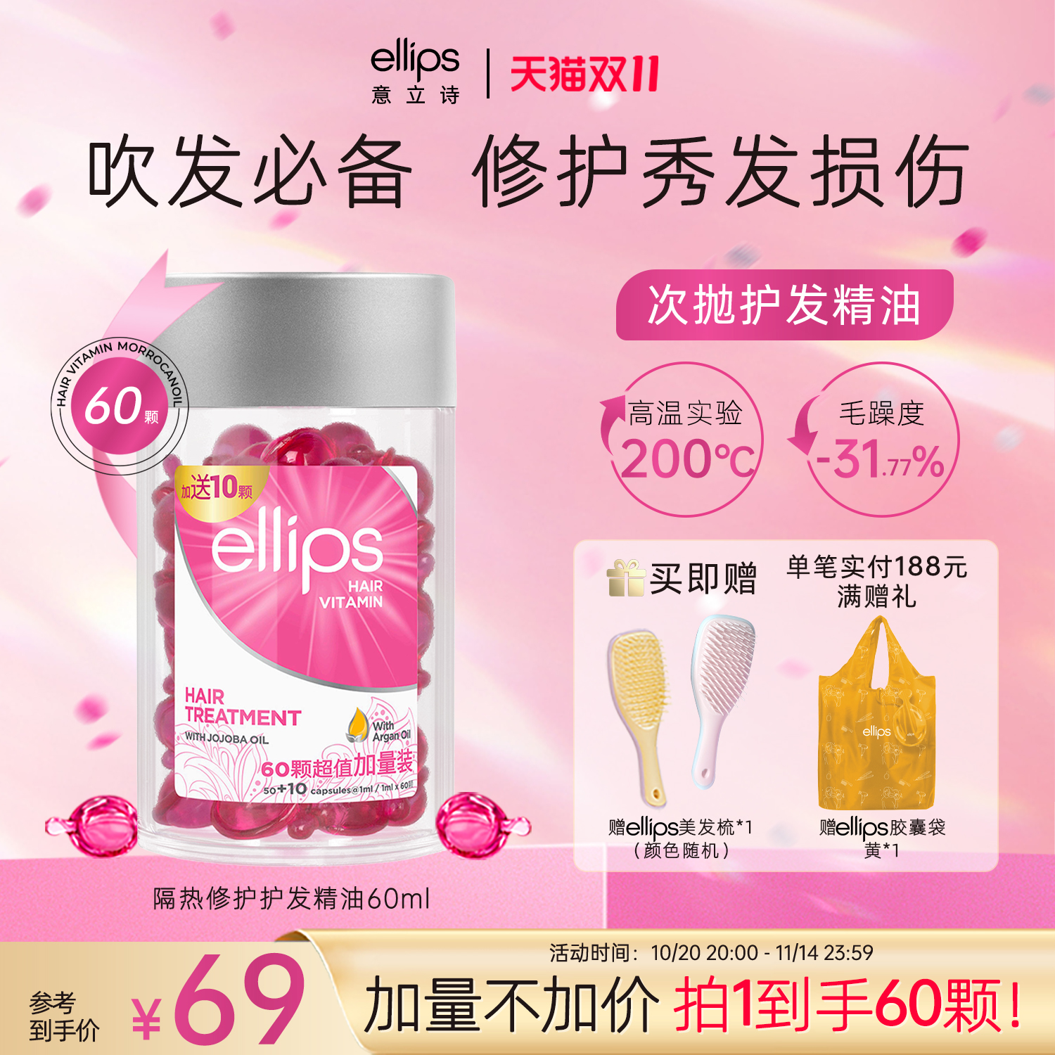 ellips意立诗护发精油胶囊改善毛躁干枯隔热修护免洗头发精油便携