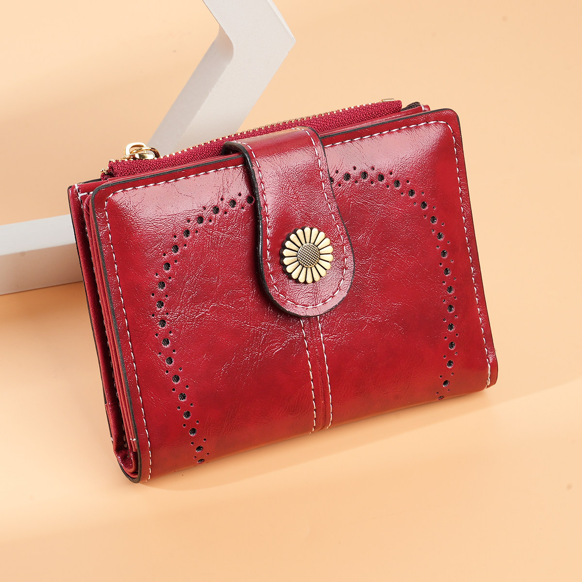 小众复古女士钱包短款拉链零钱包时尚钱夹折叠搭扣式卡包薄款钱包