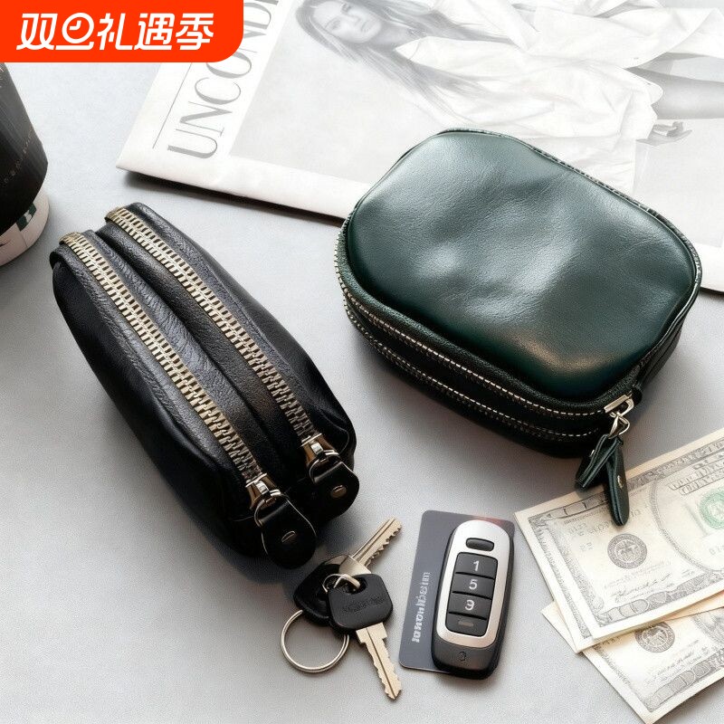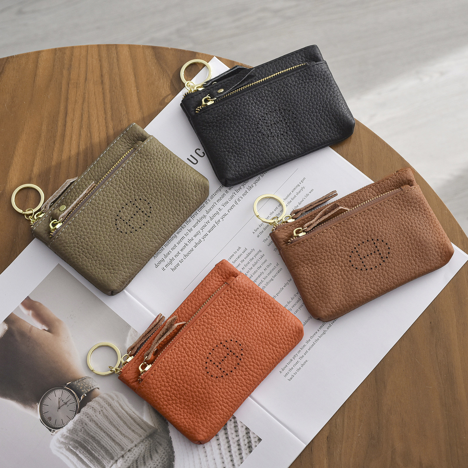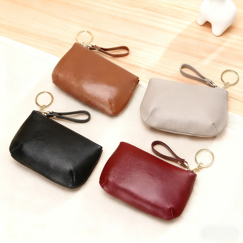 2025新款真软皮质拉链小钱包简约钥匙扣硬币包时尚薄款零钱包女
