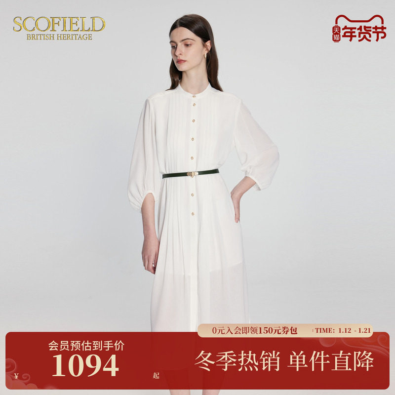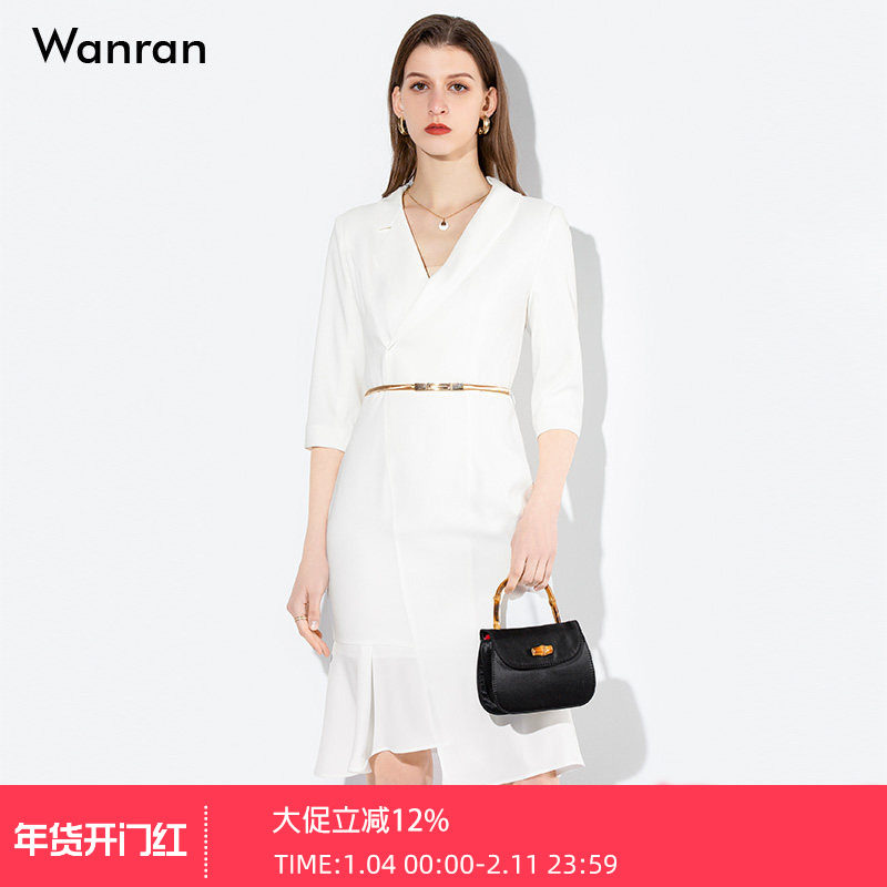 2026春季新款女装气质修身西装长裙收腰显瘦中长款白色连衣裙职业