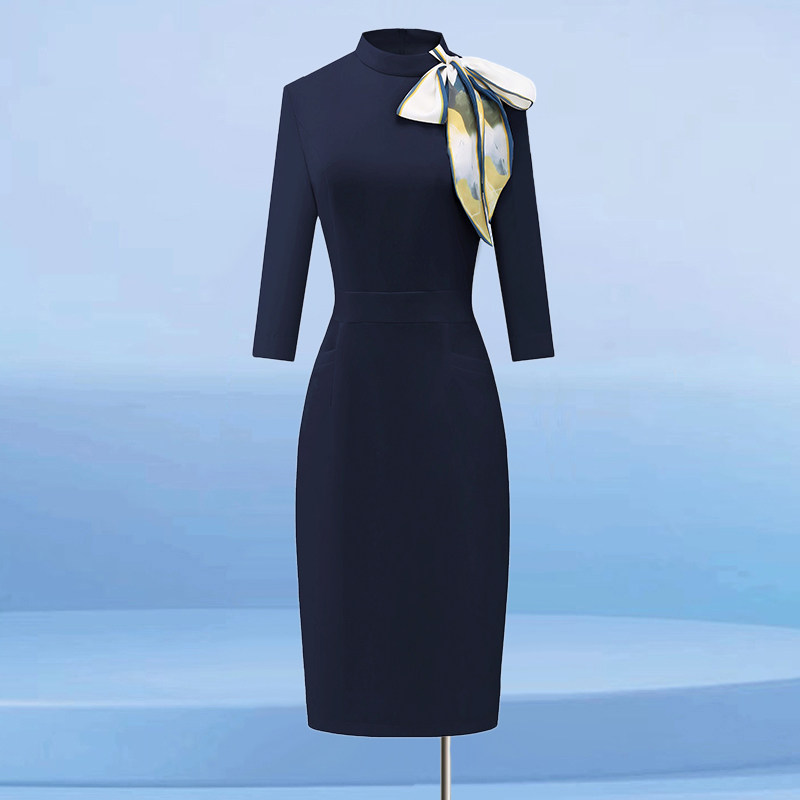 新中式连衣裙职业装连衣裙女改良旗袍物业售楼酒店前台接待工作服