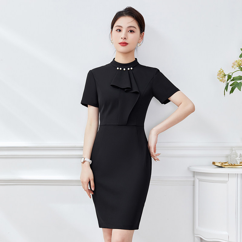 夏季黑色连身裙短袖连衣裙职业装ol通勤物业售楼处前台客服工作服