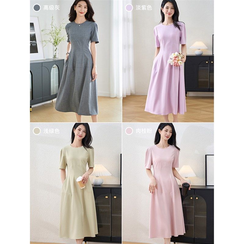 米思阳2025夏季新款通勤气质短袖连衣裙职业高端修身A字裙女1969