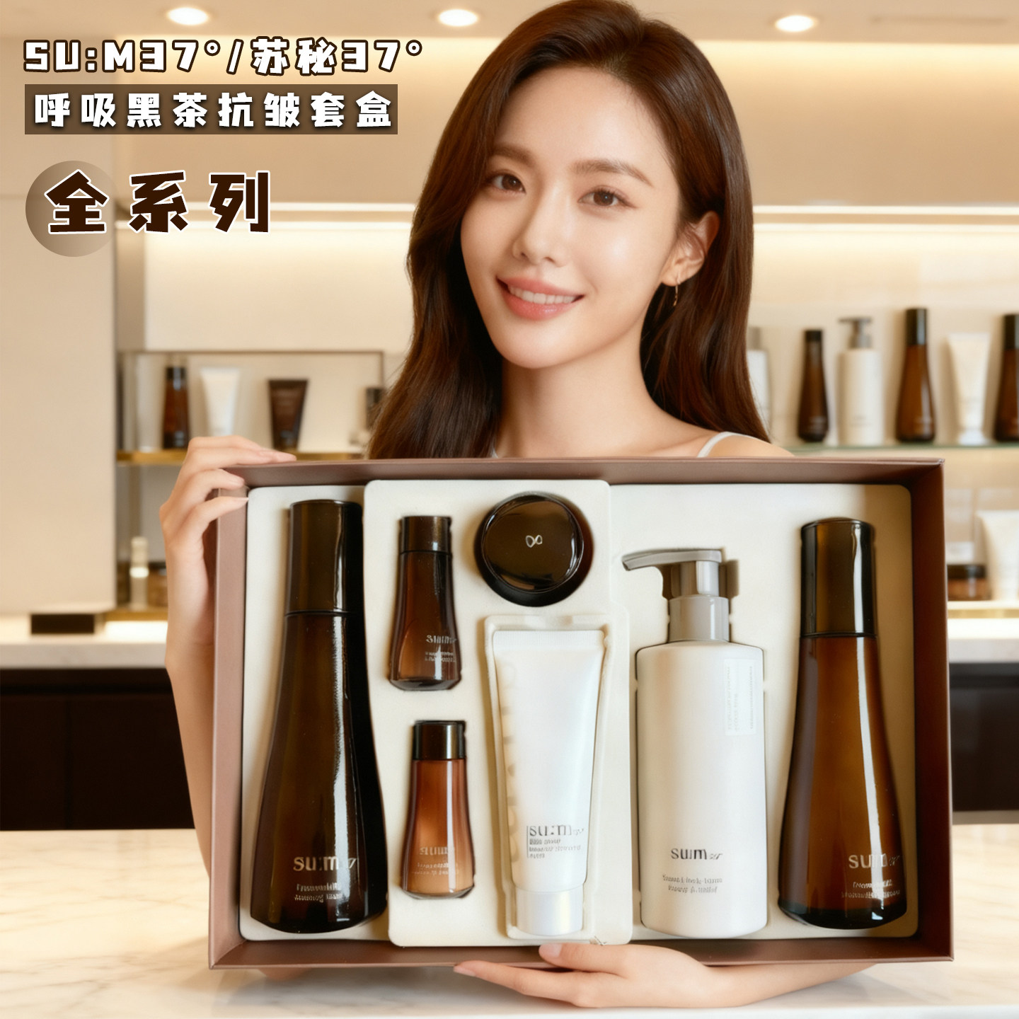 韩国SUM:37度苏秘呼吸水分惊喜时光能量黑茶水乳套盒女孕妇敏感肌