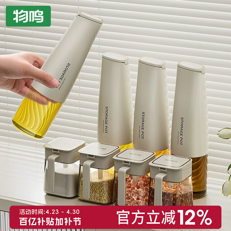 物鸣油壶调料罐组合套装厨房家用酱油醋调料瓶食品级不挂油油瓶罐